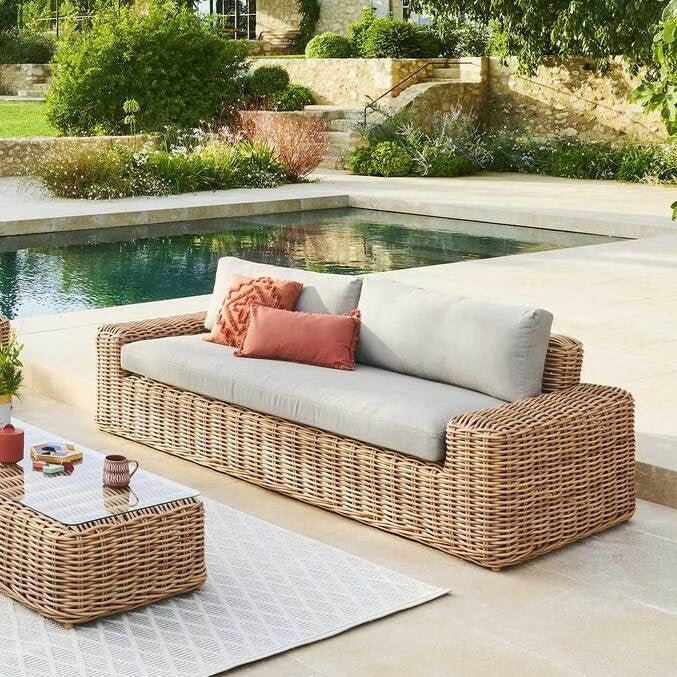 Avec sa structure traitée époxy contre la rouille et la décoloration, votre canapé résistera à la météo d’été. Les coussins sont déhoussables afin de leur redonner de l’éclat en un rien de temps. Remisez votre mobilier de jardin sous une housse et dans un endroit abrité pendant l’hiver.