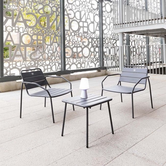 Compact et empilable, le salon en acier « PHUKET » conviendra à des jardins et des terrasses, même les plus exigus ! Composé de 2 fauteuils et d’une table basse, vous pourrez y profiter des journées ensoleillées de l’été.
